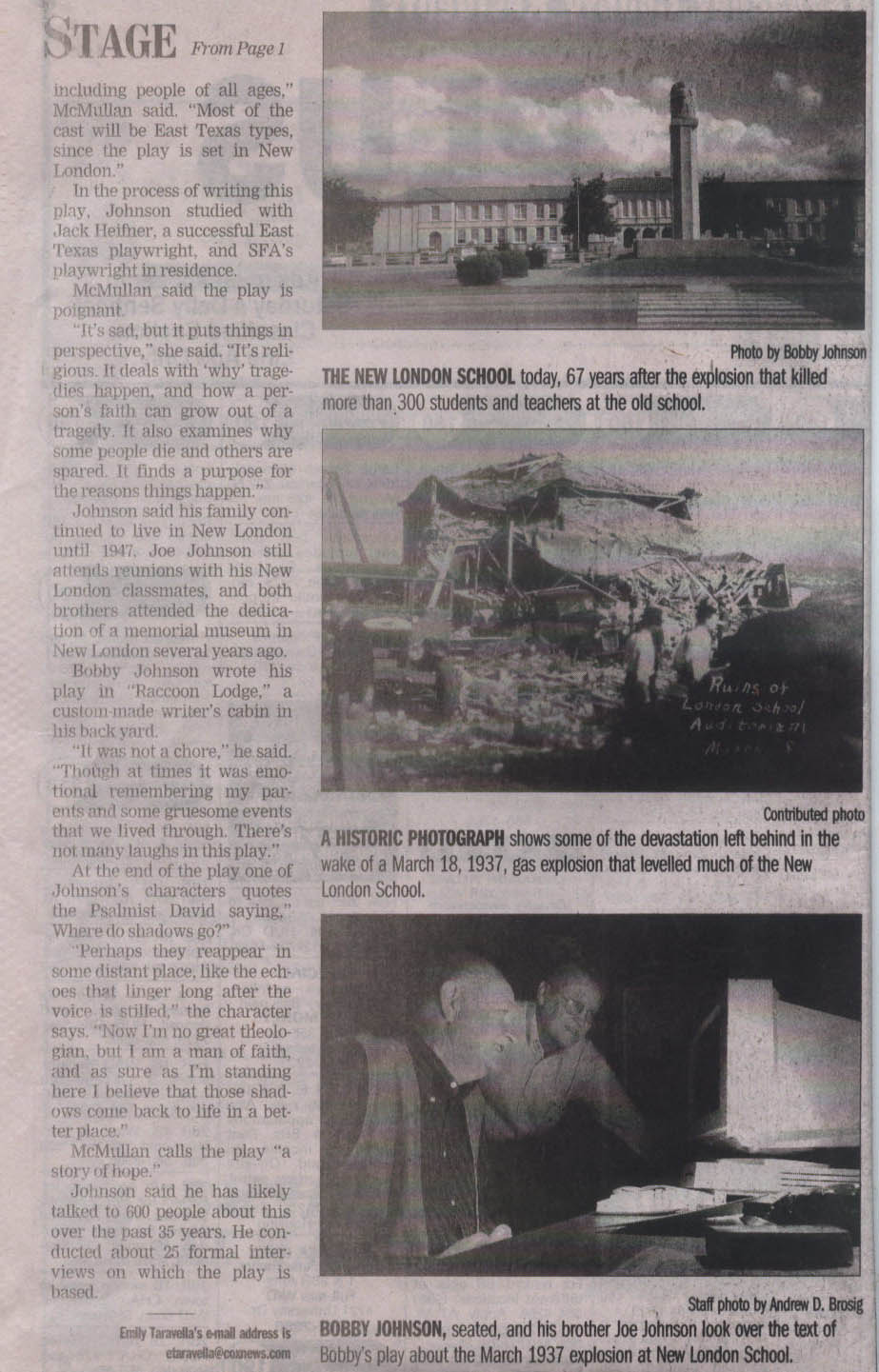 Bobby Johnson wrote his play in "Raccoon Lodge,"