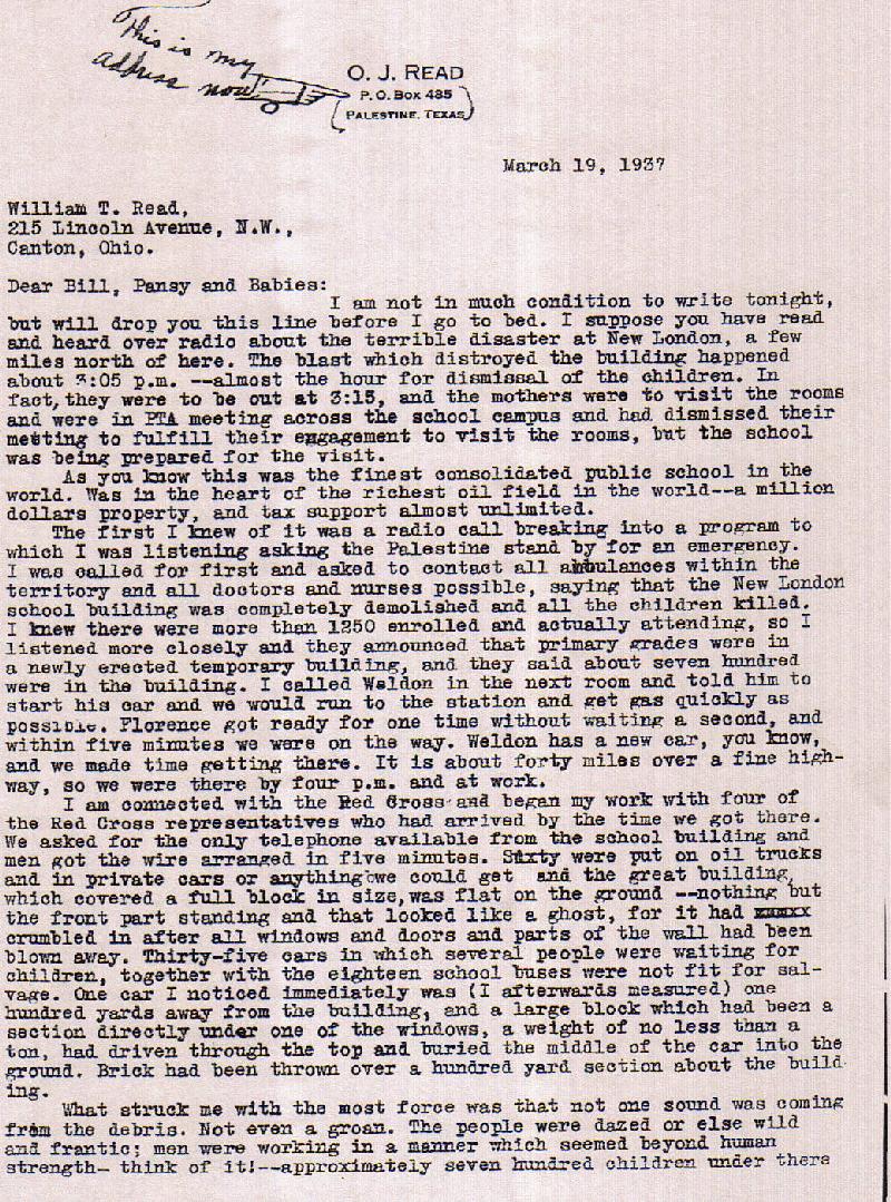 account of the New London School explosion. My